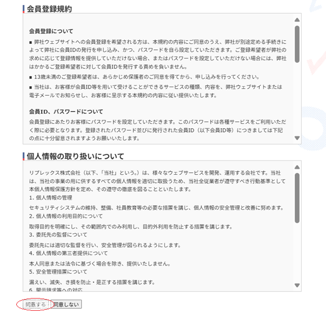 - 会員登録規約を熟読のうえ、同意される場合は「同意する」を選択してください。