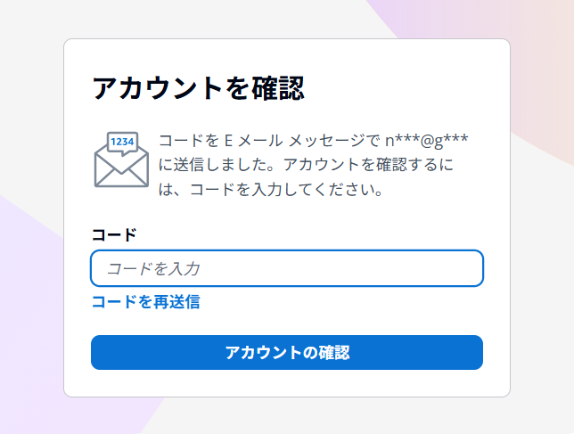 アカウントを確認のコードに貼り付けて"アカウントの確認"を押してください。